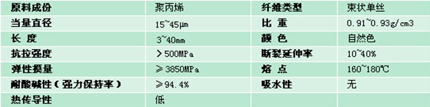下表為聚丙烯纖維的物化性能參數(見(jiàn)表1-1):