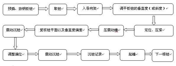 ??? 選用DZPJ-135 電動(dòng)振動(dòng)錘施工,配合50噸履帶吊,施工工藝如下: