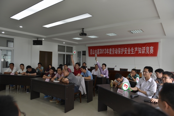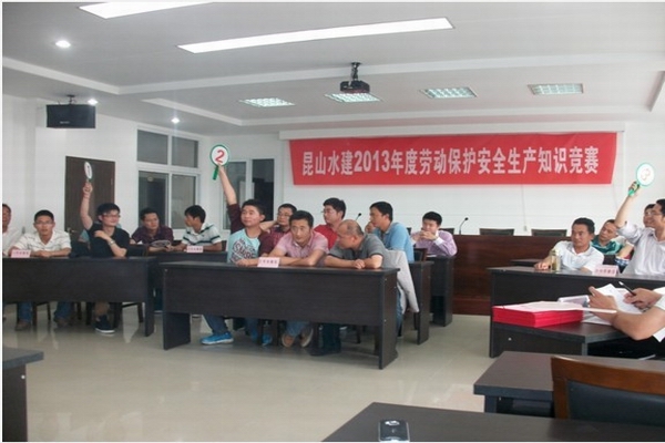 昆山水建公司于6月8日在公司四樓會(huì )議室舉辦了“2013年度勞動(dòng)保護安全生產(chǎn)知識競賽”,本屆知識競賽強調安全防護和安全操作方面的知識掌握。注重從施工實(shí)際應用出發(fā),考核施工一線(xiàn)技術(shù)和安全專(zhuān)職人員在實(shí)際工作中對所學(xué)知識的靈活運用。參賽小組以各項目部獨立組成和聯(lián)合組成為主,共設七個(gè)組別,每組三人,比賽采用必答和搶答二種形式,答案由現場(chǎng)評委當場(chǎng)評判。比賽中各隊競爭激烈,尤其是搶答部分,比快比準,場(chǎng)面非常熱烈!均展現出了扎實(shí)的知識基礎。比賽最后評比出了一、二、三等獎和鼓勵獎,分別給予了表彰及獎勵。本次知識競賽不僅激勵了職工對安全生產(chǎn)知識的學(xué)習,也充分培養了職工的勞動(dòng)保護、安全生產(chǎn)意識,在施工一線(xiàn)的職工中產(chǎn)生了積極的影響。