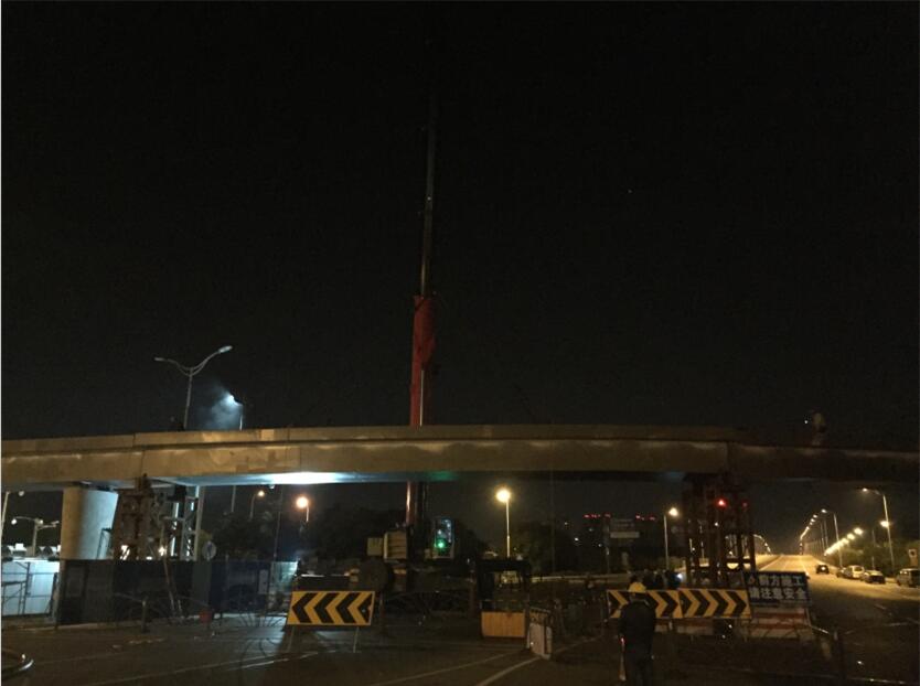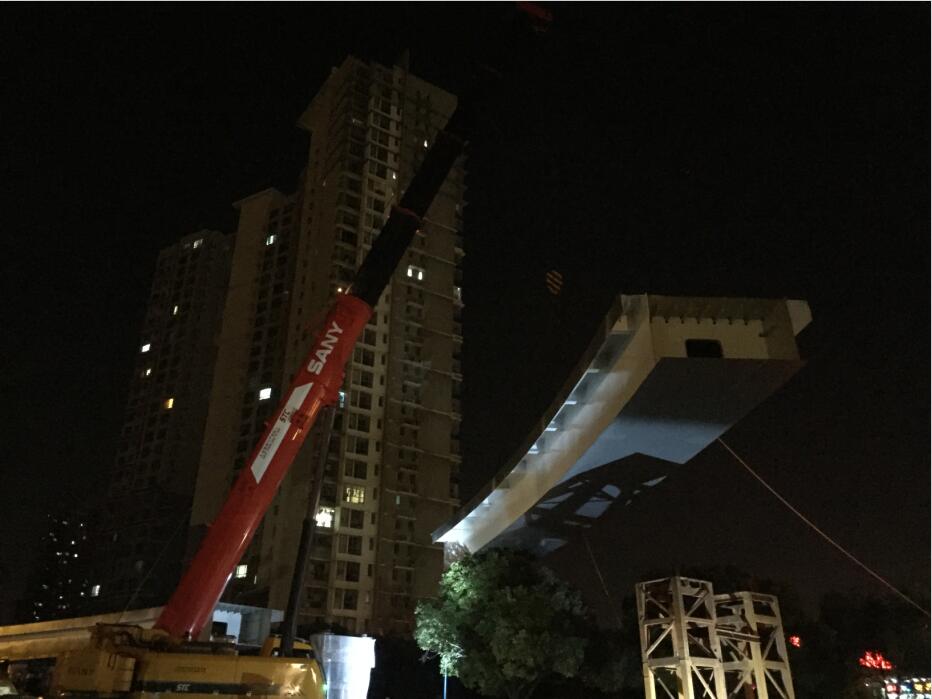 由我公司承建的柏廬路人行天橋工程,經(jīng)過(guò)幾個(gè)月的緊張施工,天橋主體于昨晚順利吊裝合攏。
