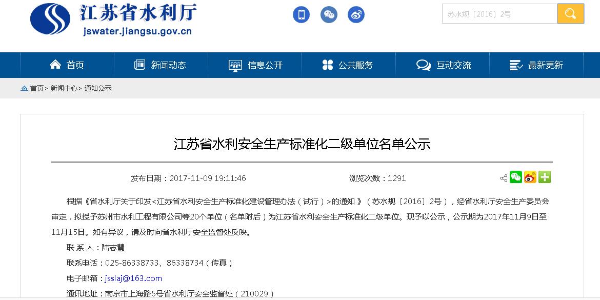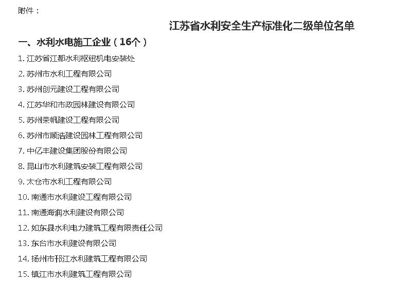 熱烈祝賀我公司評價(jià)為“江蘇省水利安全生產(chǎn)標準化二級單位”!