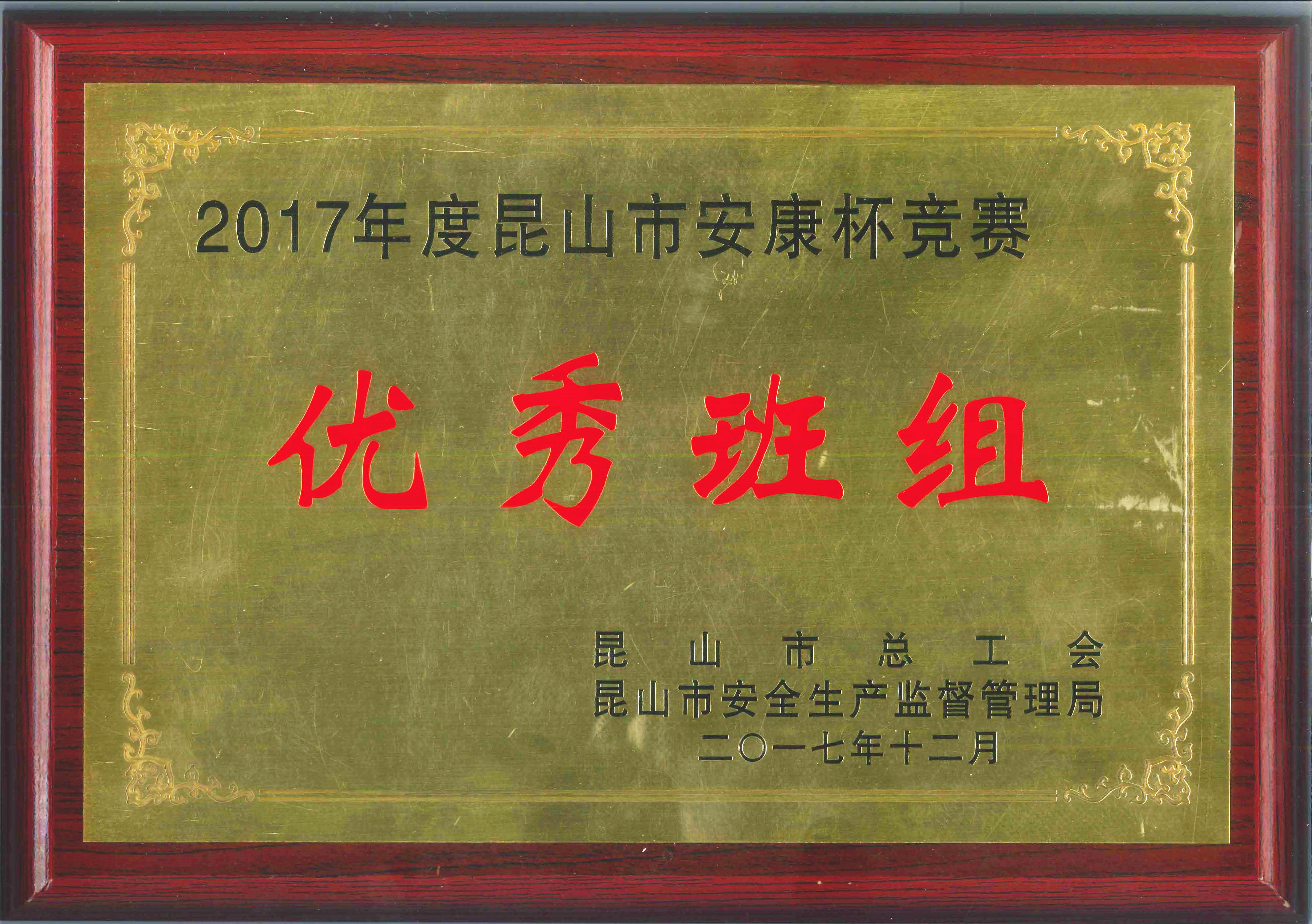 2017年度昆山市安康杯競賽優(yōu)秀班組