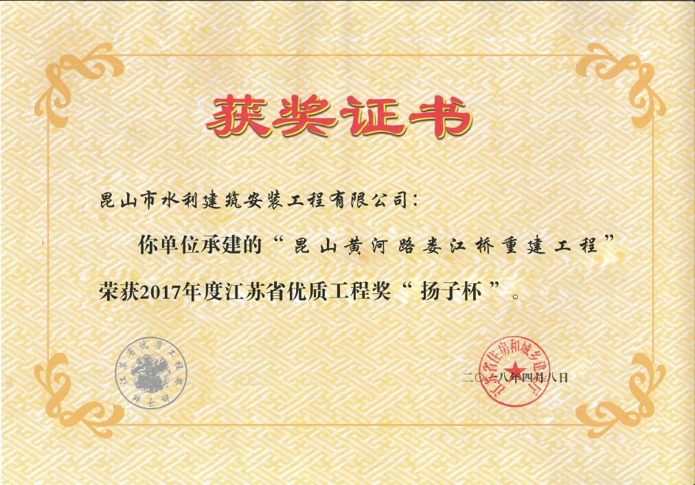 2017年度江蘇省優(yōu)質(zhì)工程獎“揚子杯”