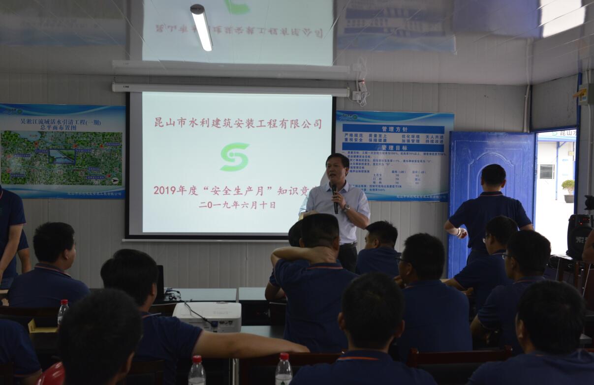 2019年06月10日,由我公司舉辦的昆山水建2019年度安全生產(chǎn)月啟動(dòng)儀式及“安全生產(chǎn)知識競賽”活動(dòng)圓滿(mǎn)成功。在啟動(dòng)儀式結束后,所有職工參加了安全生產(chǎn)知識講座及“安全生產(chǎn)知識競賽”。在場(chǎng)職工均踴躍參與活動(dòng),氣氛熱烈,相互探討安全生產(chǎn)相關(guān)知識。此次活動(dòng)使得所有職工能更鞏固、吸收施工作業(yè)時(shí)的各項安全知識,起到了良好的宣傳教育作用。