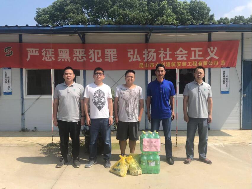 2019年07月25日,昆山水建公司組織了防暑降溫“送清涼”活動(dòng),公司采購了大批夏季防暑降溫用品,在高溫來(lái)臨前第一時(shí)間送到項目部員工手上。公司領(lǐng)導要求各項目經(jīng)理按照相關(guān)文件要求,組織好高溫環(huán)境下的施工管理工作,確保員工的健康安全。