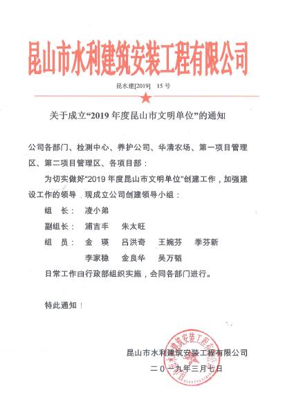 關(guān)于成立“2019年度昆山市文明單位”的通知
