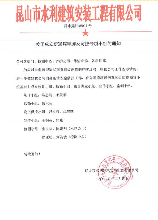 關(guān)于成立新冠病毒肺炎防控專(zhuān)項小組的通知