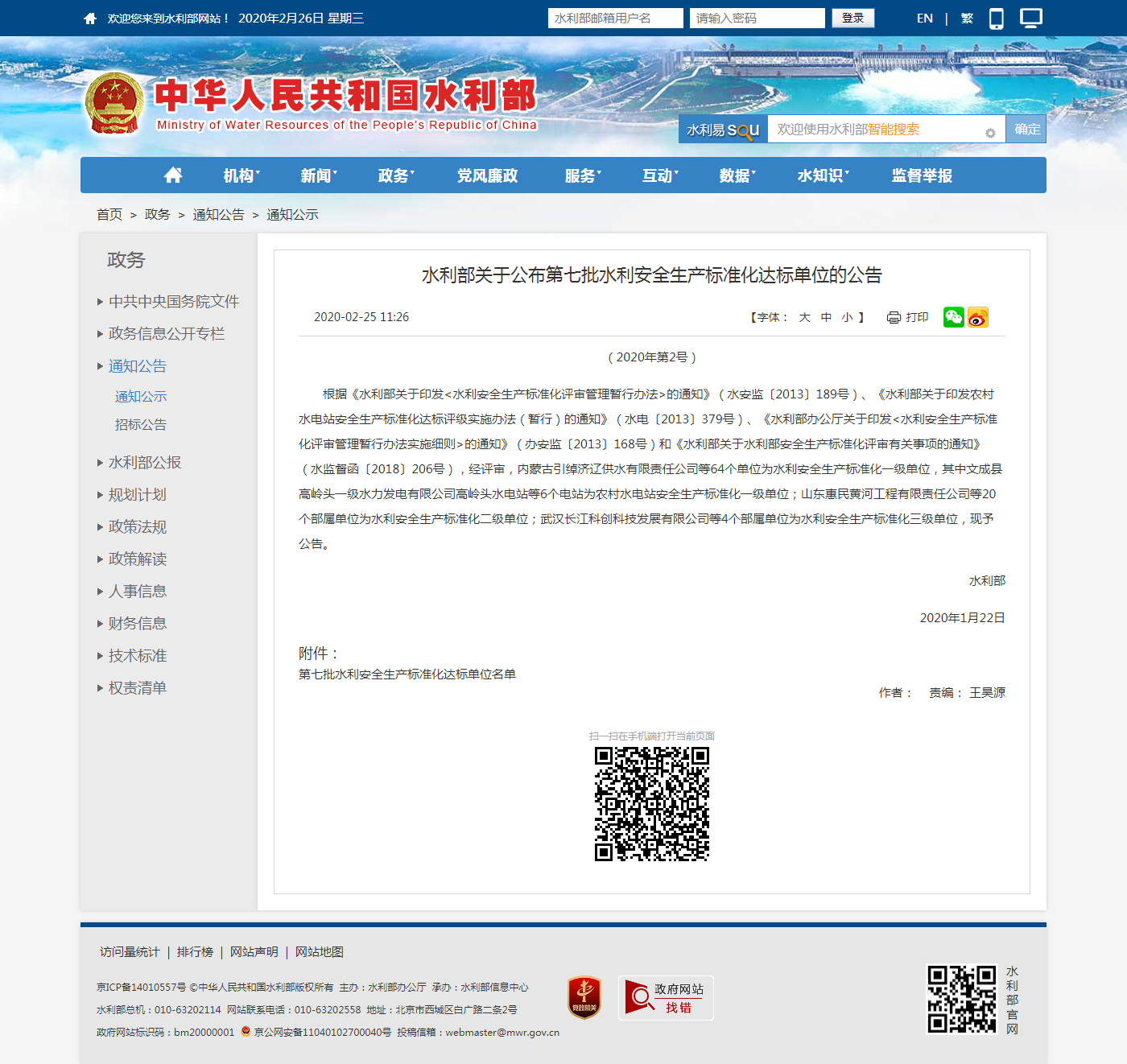 網(wǎng)址:http://www.mwr.gov.cn/zw/tzgg/tzgs/202002/t20200225_1389509.html