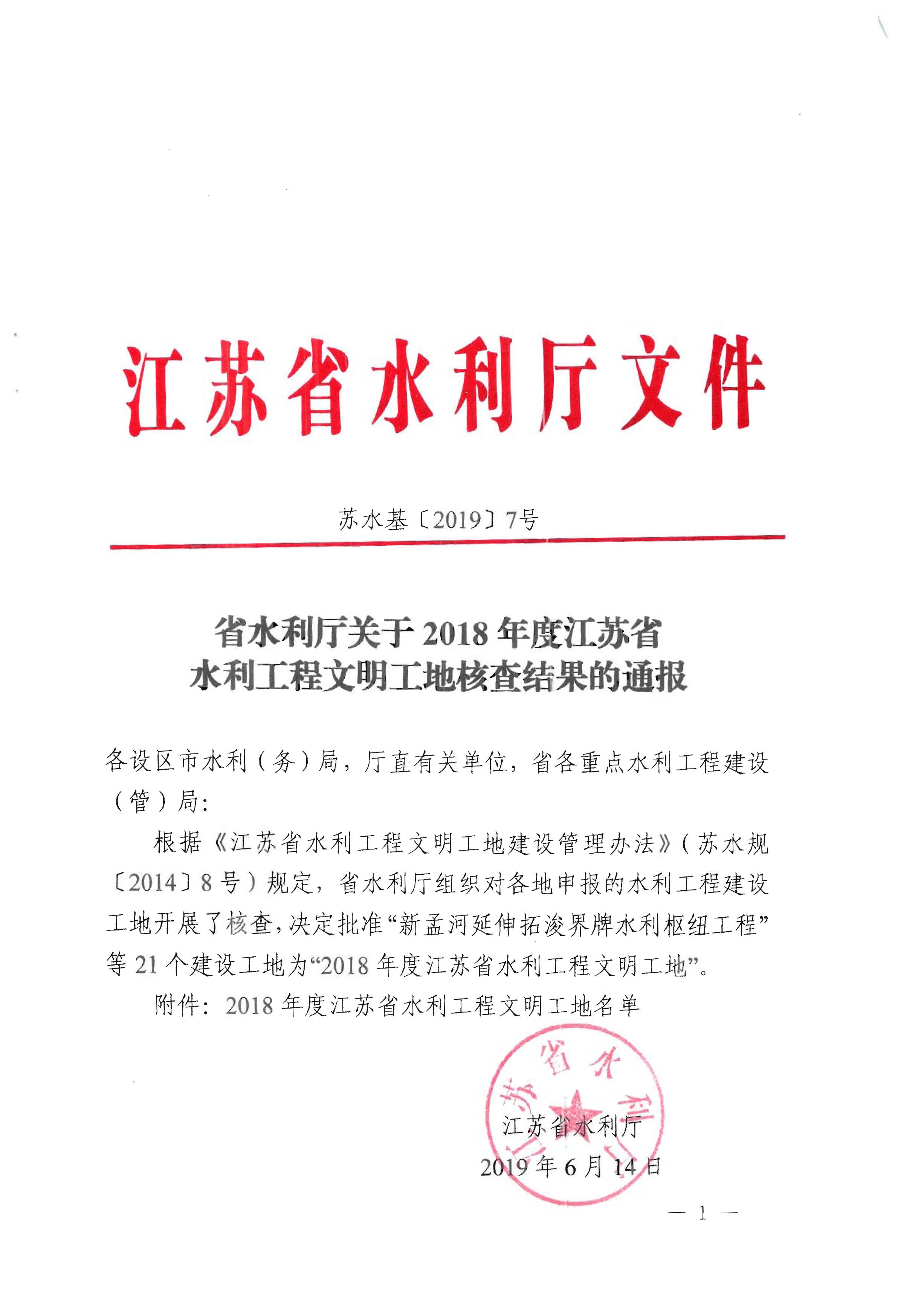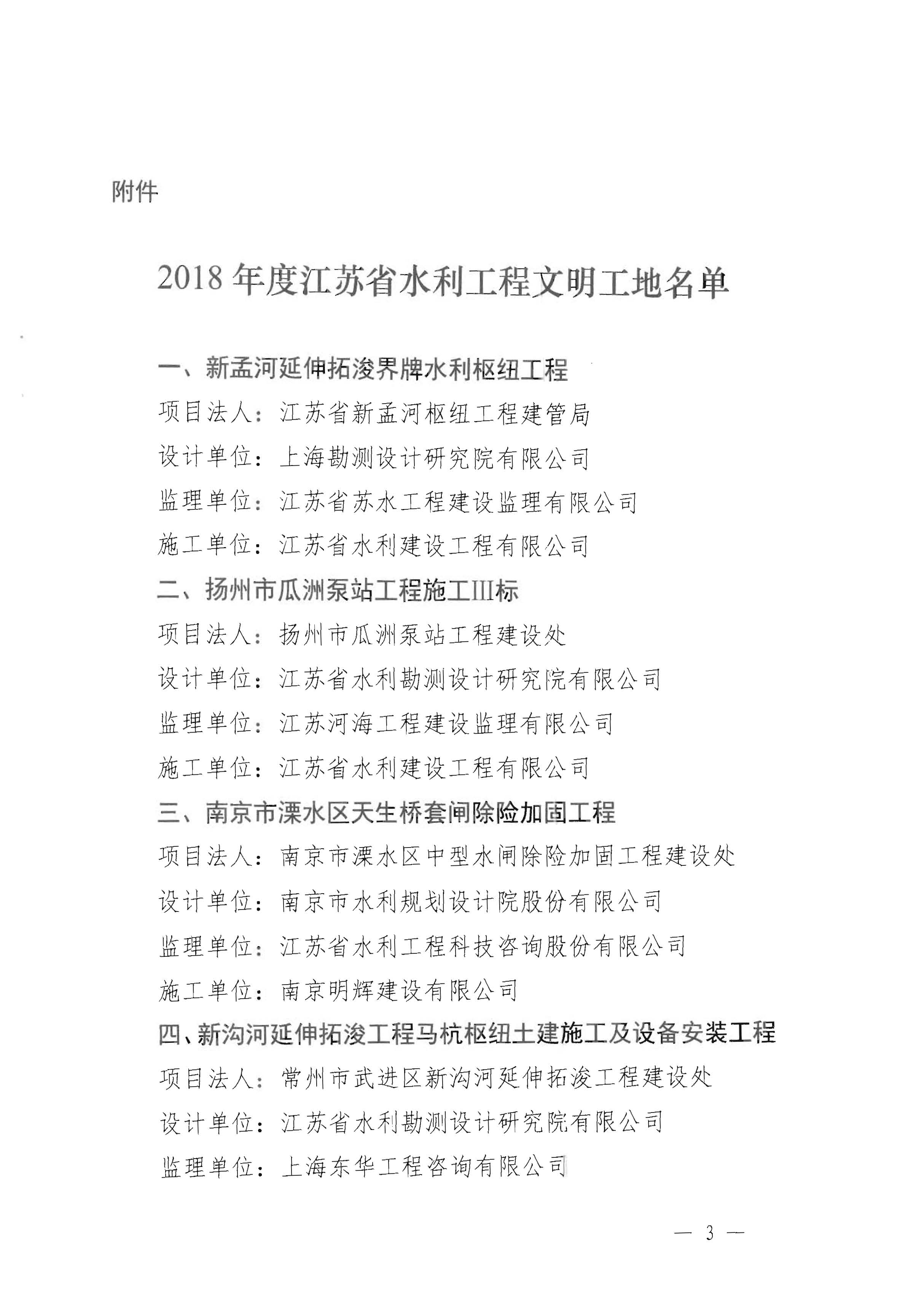 省水利廳關(guān)于2018年度江蘇省水利工程文明工地核查結果的通報