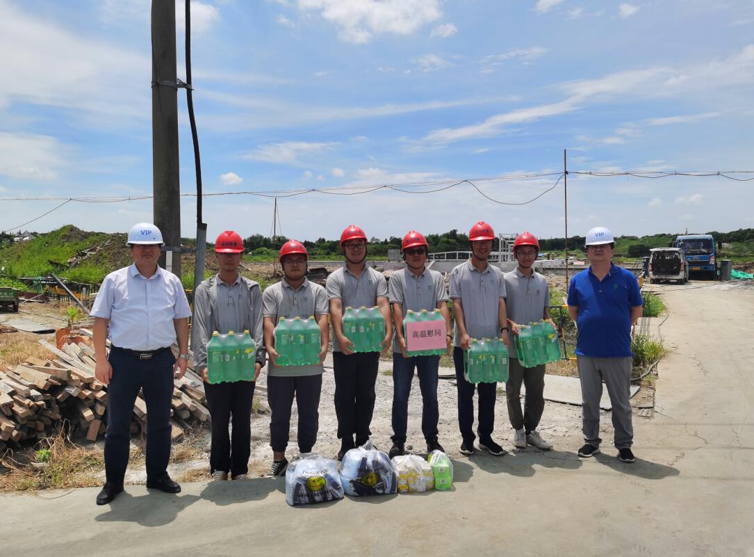 2020年07月30日,我公司董事長(cháng)趙新華、總經(jīng)理凌小弟等一行人,前往公司各一線(xiàn)施工現場(chǎng)進(jìn)行高溫慰問(wèn)活動(dòng),公司準備了消暑降溫的物品,將“清涼”送到一線(xiàn)。今年梅雨季節雨量較大,給現場(chǎng)施工作業(yè)帶來(lái)了不小的困難,因此希望各員工在保證工期的同時(shí)注重身體管理、注意人身安全,以飽滿(mǎn)的精神在夏季繼續前行!