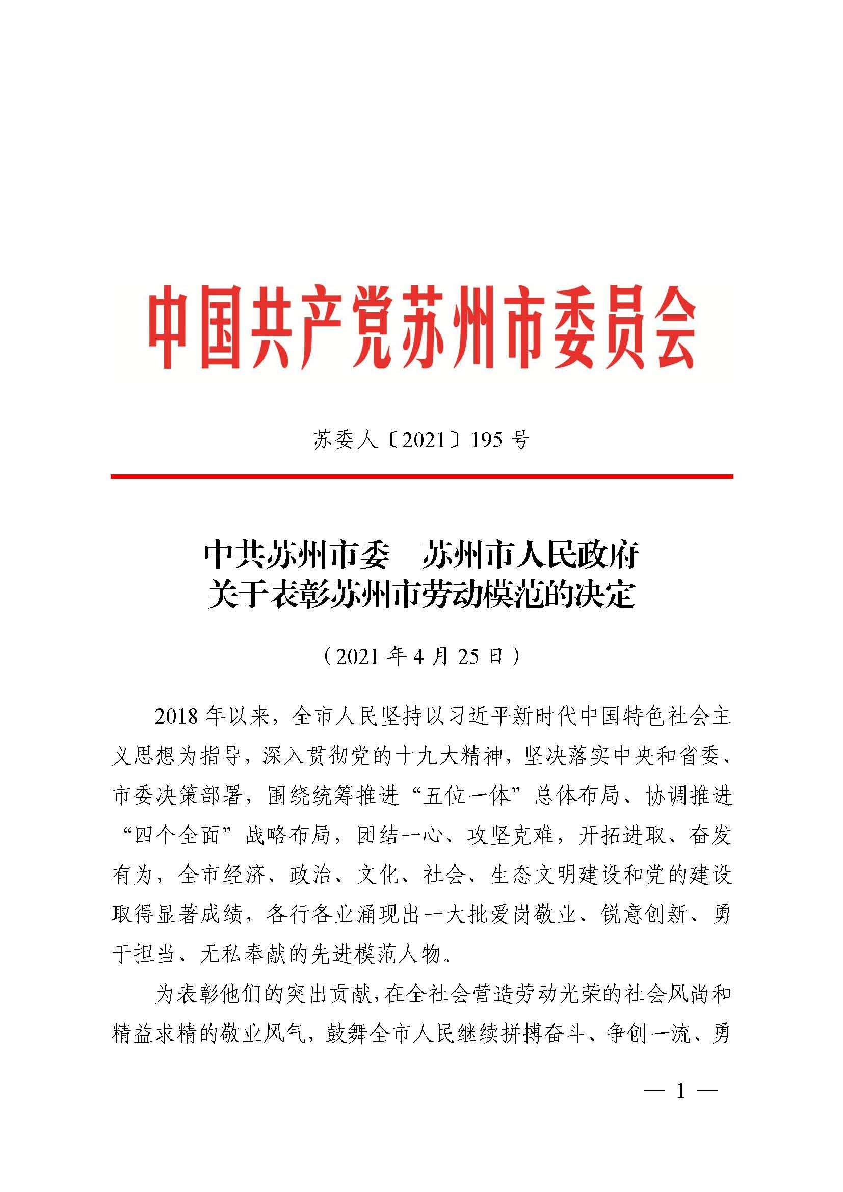 我公司凌小弟同志被評為蘇州市"勞動(dòng)模范"稱(chēng)號