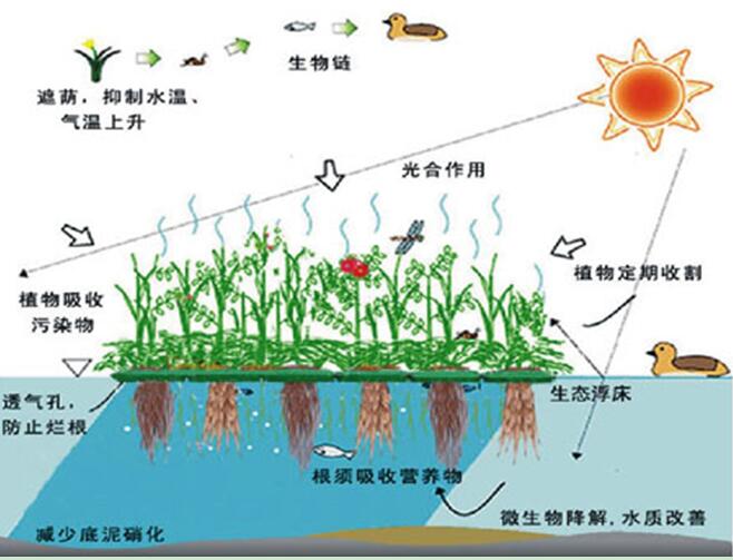 生態(tài)浮床作用原理示意圖