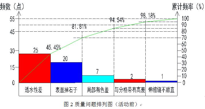 小組應用《帕米孔藝術(shù)路面施工作業(yè)指導書(shū)》進(jìn)行施工,并對鞏固期內2021年2月~3月施工的樁號為24+000~24+675透水混凝土施工的帕米孔藝術(shù)路面的質(zhì)量進(jìn)行抽檢,共采集350點(diǎn),合格點(diǎn)334點(diǎn),合格率95.4%。我們對這些不合格點(diǎn)進(jìn)行了匯總、分析,繪制了統計表如下: