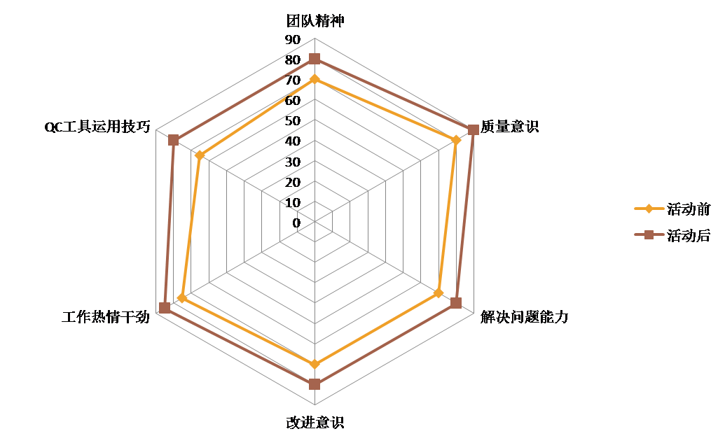 本次QC活動(dòng)結束后,全體成員在質(zhì)量意識、進(jìn)取精神、改進(jìn)意識、團隊精神、個(gè)人能力以及QC工具運用技巧等方面有了很大的提高。