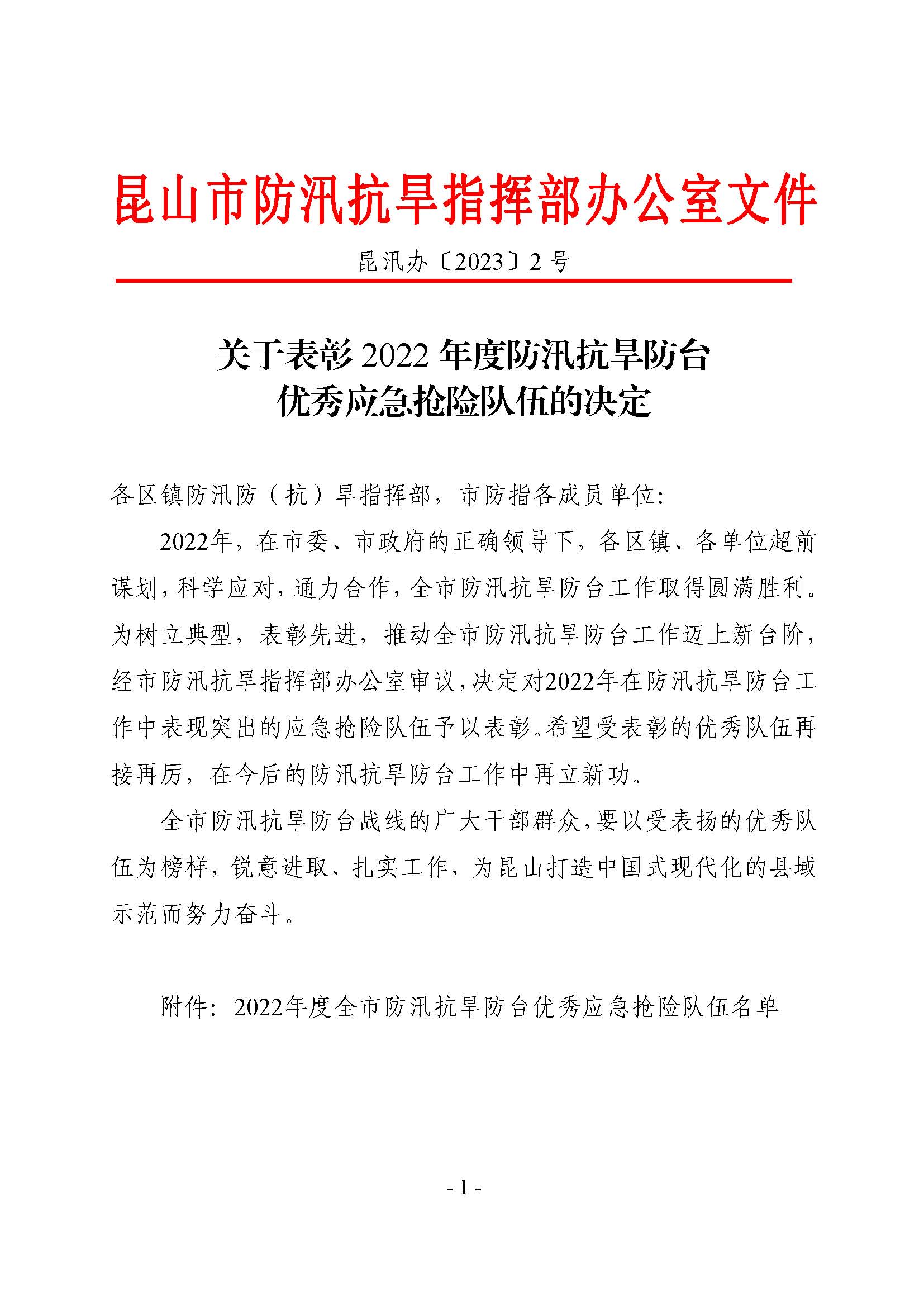 水建公司榮獲“2022 年度全市防汛抗旱防臺優(yōu)秀應急搶險隊伍”稱(chēng)號