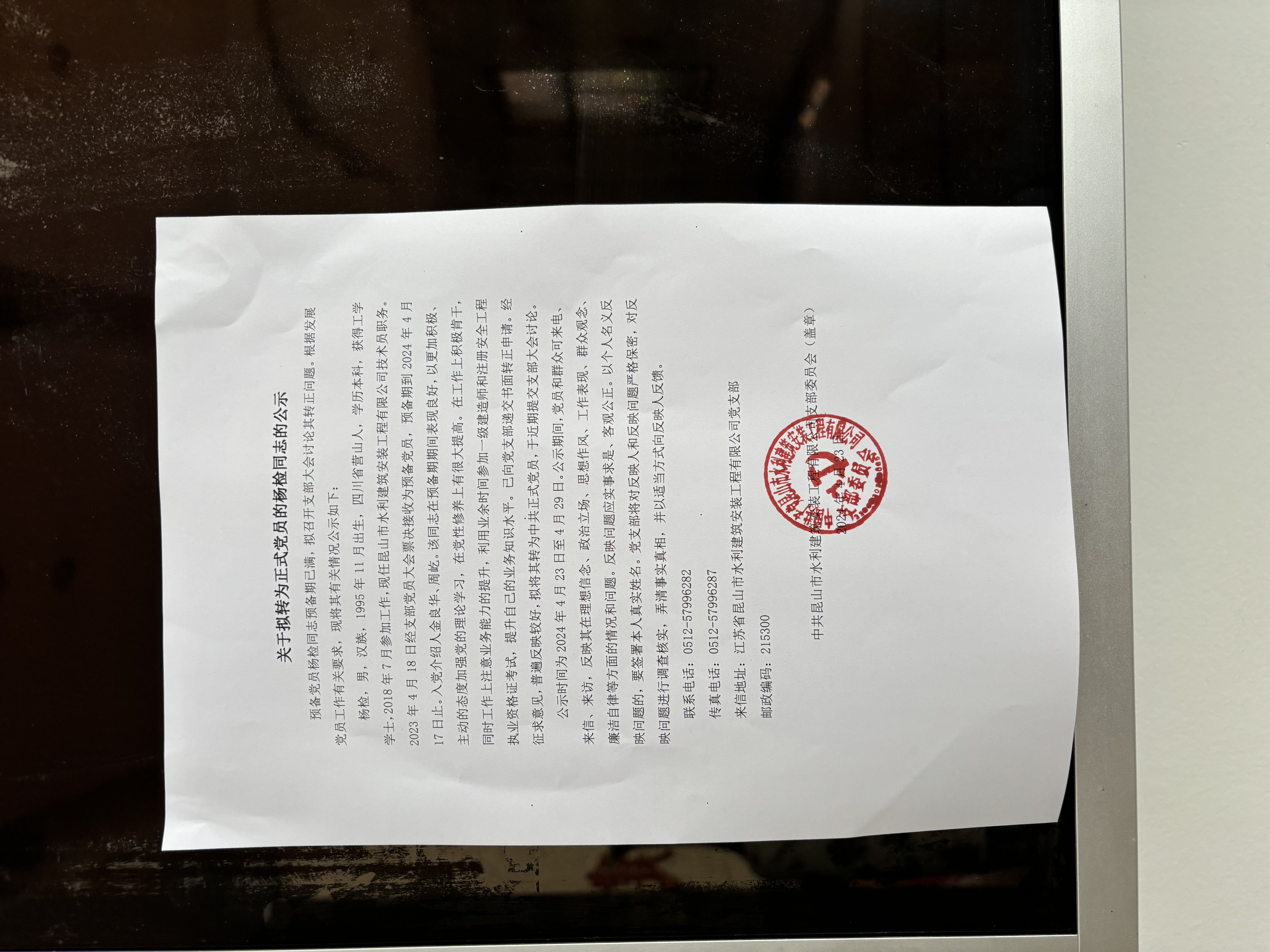 關(guān)于擬轉為正式黨員的楊檢同志的公示
